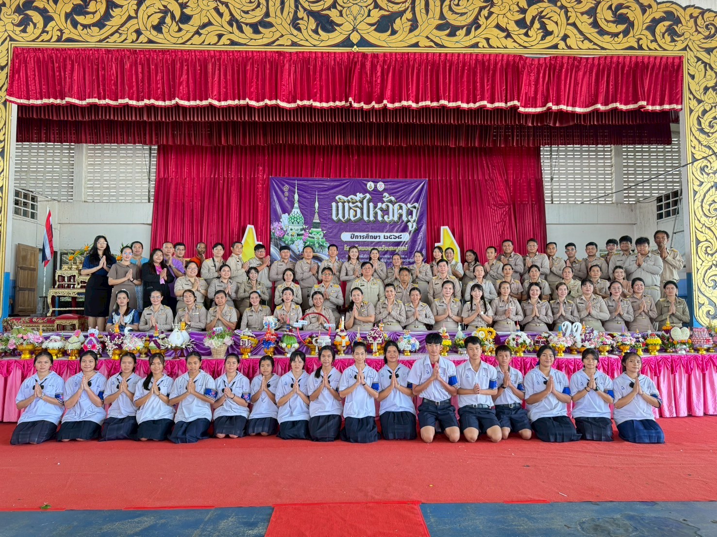 ผู้อำนวยการโรงเรียนอนุบาลวังสมบูรณ์ พร้อมด้วยคณะผู้บริหาร คณะครู และนักเรียนเข้าร่วมพิธีไหว้ครูเพื่อน้อมรำลึกถึงพระคุณบูรพาคณาจารย์ โดยท่านพระครูศรีอุดมธารคณารักษ์ ให้พรและเจิมหนังสือเพื่อเป็นสิริมงคลแก่นักเรียน